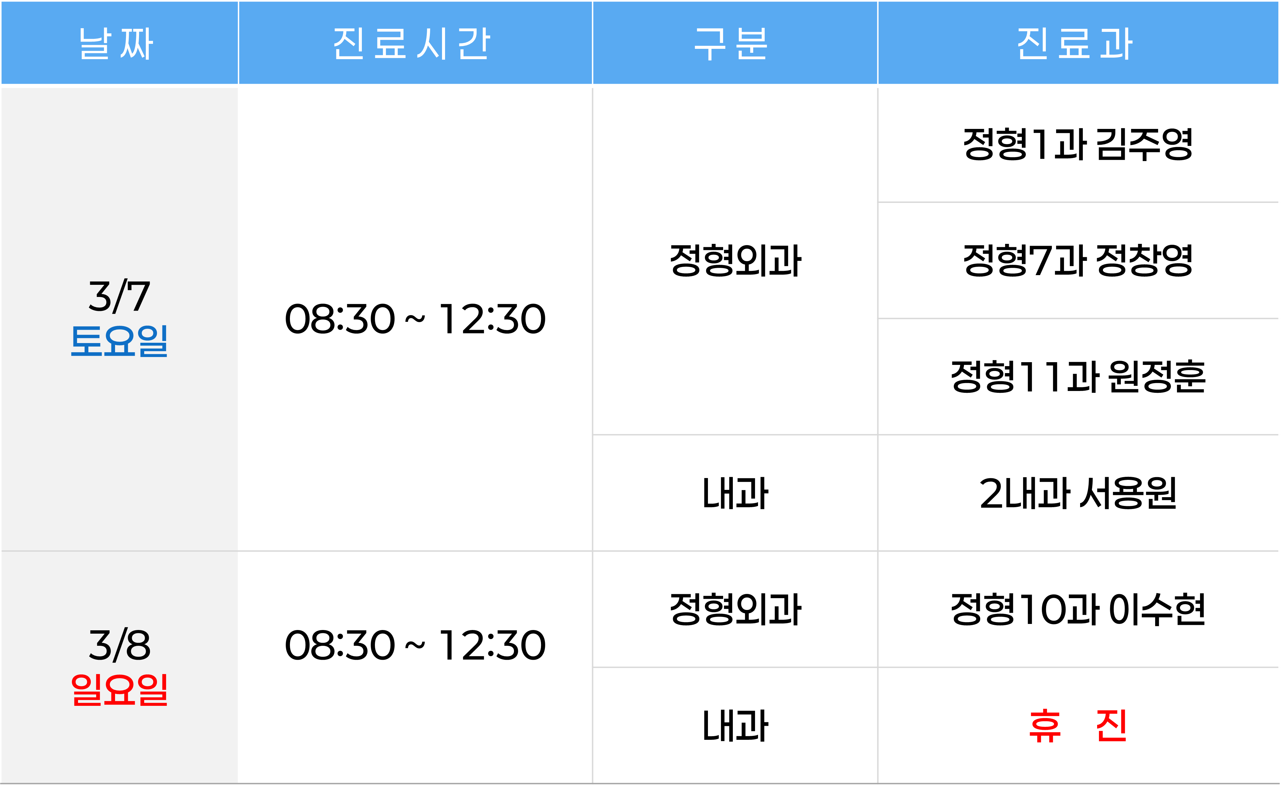 이춘택병원 주말진료 스케줄 안내드립니다.
