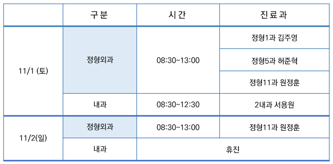 - 08:30 ~ 12:30 2내과 서용원 11월 2일 (일)